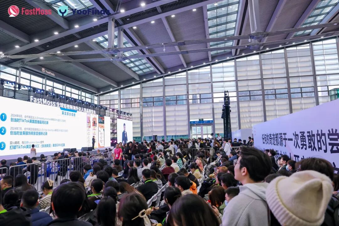 1月10日上午,FGVCon第三届海外达人选品展览会主办方在8号馆设置了主会场,首先登台的是FastMoss创始人史文禄。